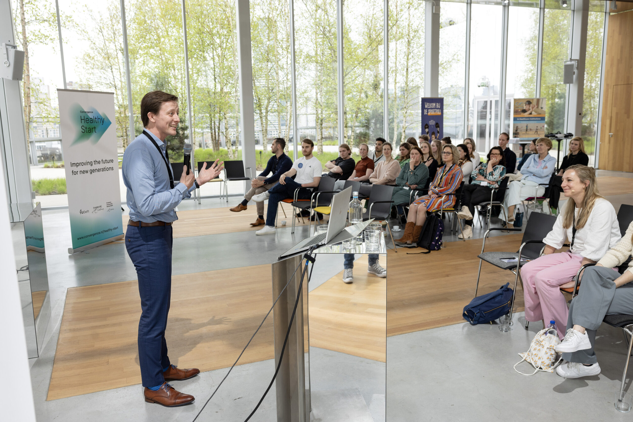 ‘Wat beweegt jou?’ Op 8 april vond het eerste Healthy Start colloquium plaats in het karakteristieke Depot Boijmans van Beuningen. Met drie sprekers, moderator Annabel de Vreeker en een volgeboekte zaal luisterden we naar inspirerende verhalen, unieke inzichten en methoden, en gingen we met elkaar in gesprek over het stimuleren van een actief en gezond leven voor chronisch zieke kinderen. De middag sloten we af met een interactieve demonstratiemarkt en netwerkborrel.